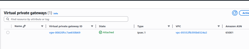 - Select the Virtual Private Gateway and one of the Customer Gateways.