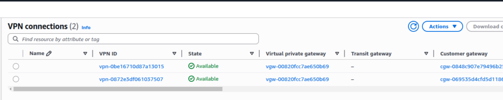 - Repeat the process to create a second VPN connection using the other Customer Gateway.