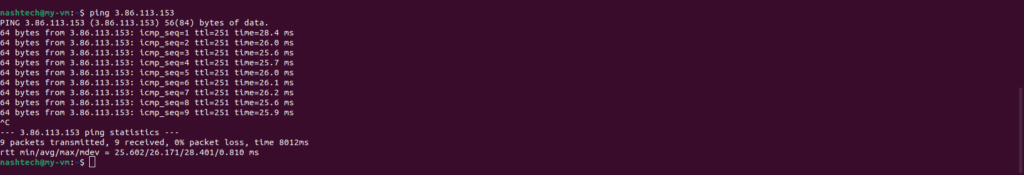 - SSH into the GCP instance and ping the private IP address of the EC2 instance.