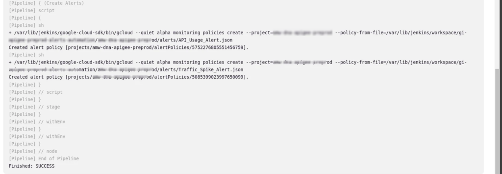 sh "${GCLOUD_DIR}/gcloud --quiet alpha monitoring policies create --project=<GCP_PROJECT_NAME> --policy-from-file='${WORKSPACE}/${alerts}.json'"