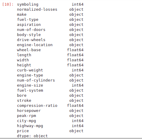 The main types stored in Pandas dataframes are object, float, int, bool and datetime64. In order to better learn about each attribute, it is always good for us to know the data type of each column. In Pandas