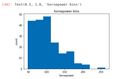 We will use the pandas method ‘cut’ to segment the ‘horsepower’ column into 3 bins