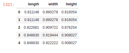 To demonstrate normalization, let’s say we want to scale the columns “length”, “width” and “height”.