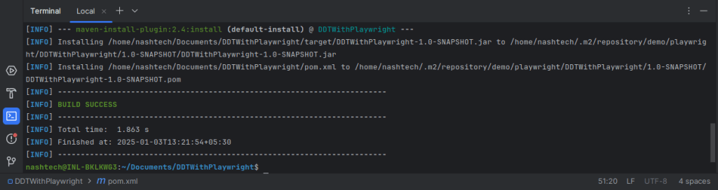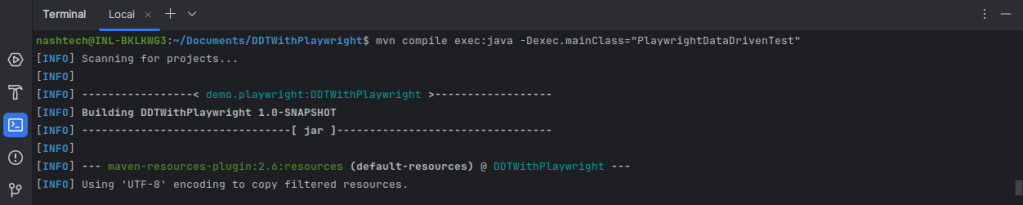 - Navigate to the Project Directory: Open the terminal and go to the directory where your PlaywrightDataDrivenTest.java file is located.