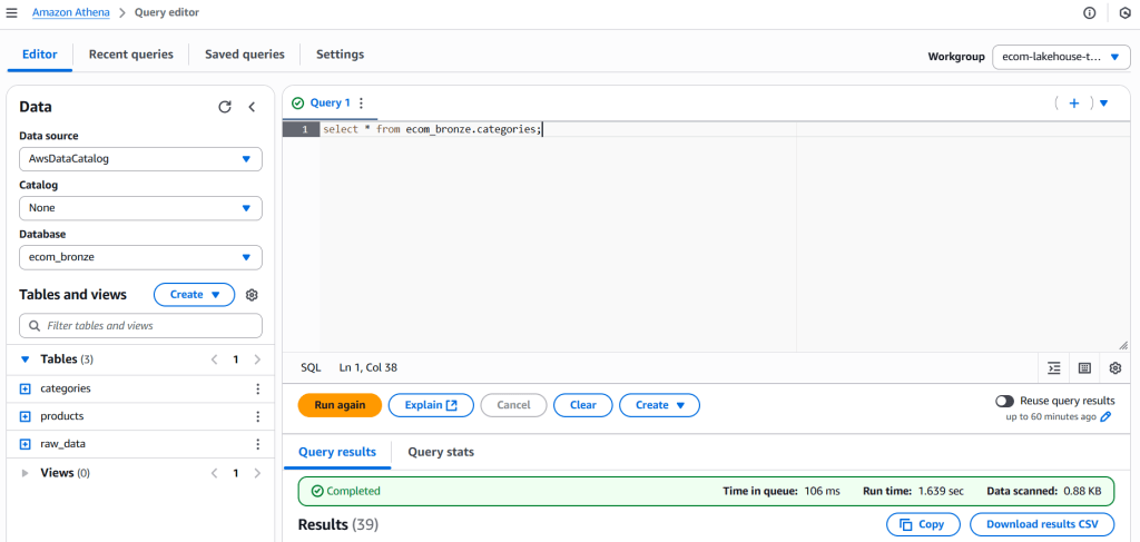 s3://ecom-analyzer-lakehouse/bronze/ - IAM role: