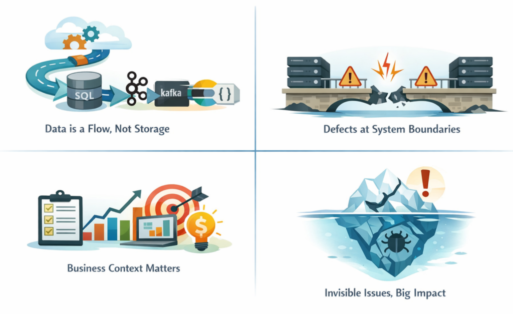Data testing in distributed systems is not about checking whether data exists. It is about ensuring that data remains truthful, consistent, and meaningful as it flows across technologies, teams, and use cases.