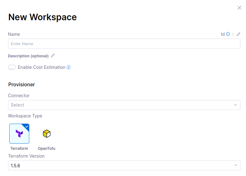 Fill the details such as name and tool ( terraform or opentofu ) then you need to add a connector that will help us to authenticate with AWS below provisioner select connector