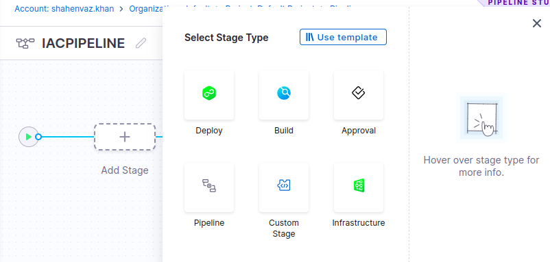 Now after clicking on add staging you have to select stage type. As we are deploying our infrastructure, we will select the Infrastructure option.