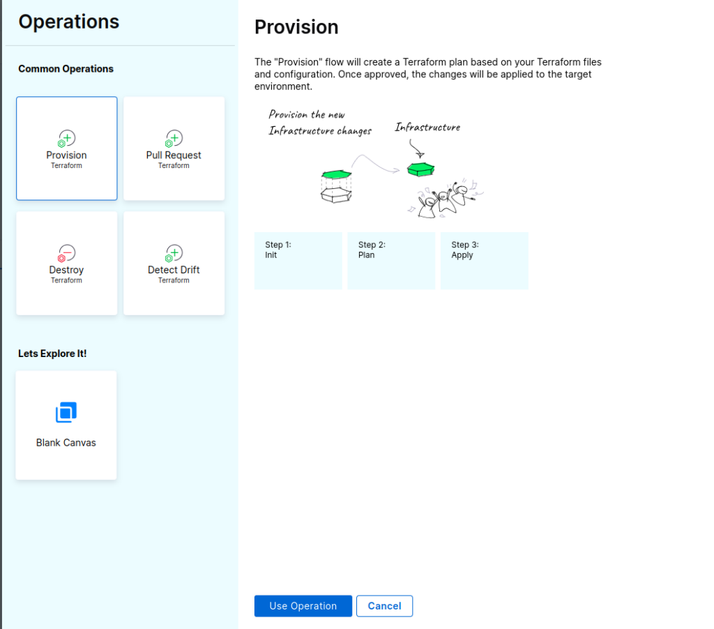 After you click next you will see that it will ask for operation select provision and click use operation.