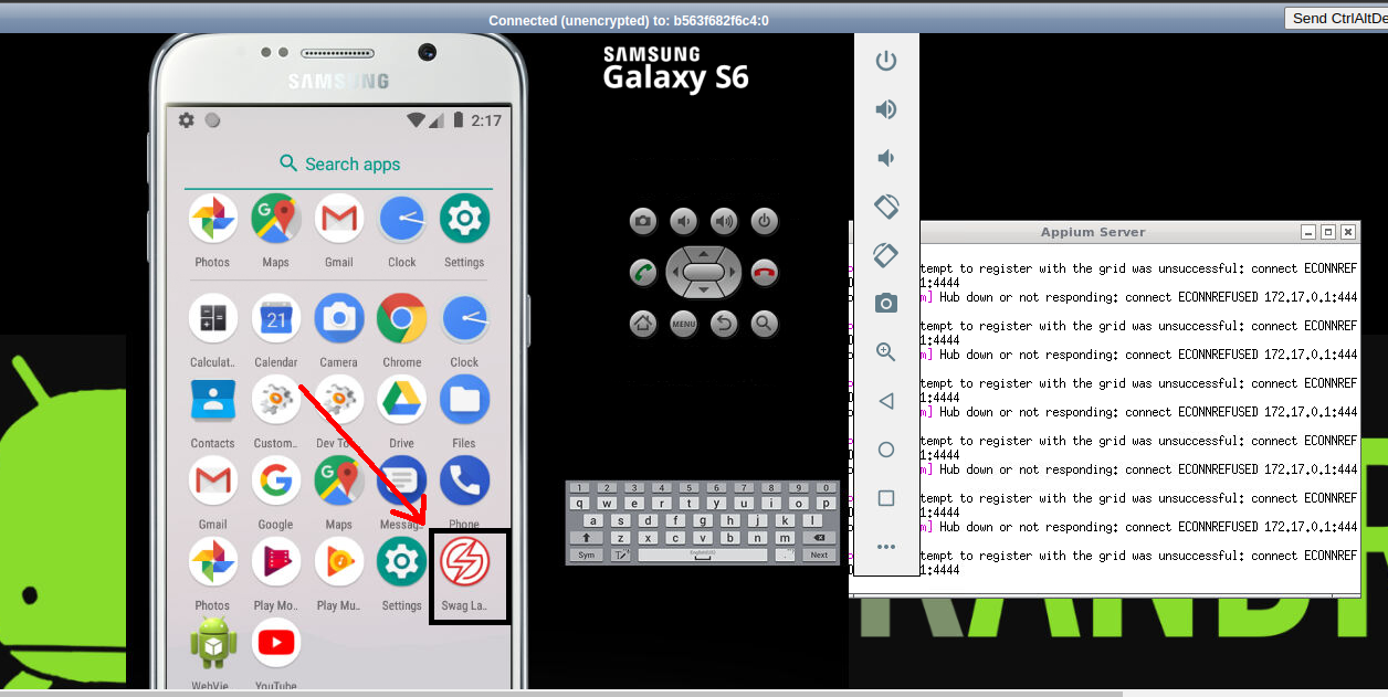 The above result indicates that a docker container is running and linked to both the Appium host and our local host 6080. When you open this local host in a browser, the screen below appears.