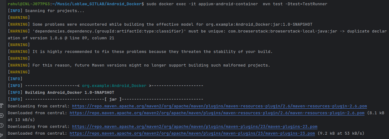 The majority of our work is done; the only thing left is to execute the test suites from the maven command inside our running Docker container.