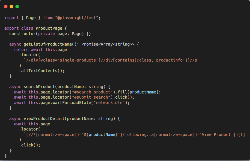 We can apply the Page Object Model (POM) pattern in this project by creating a corresponding page file