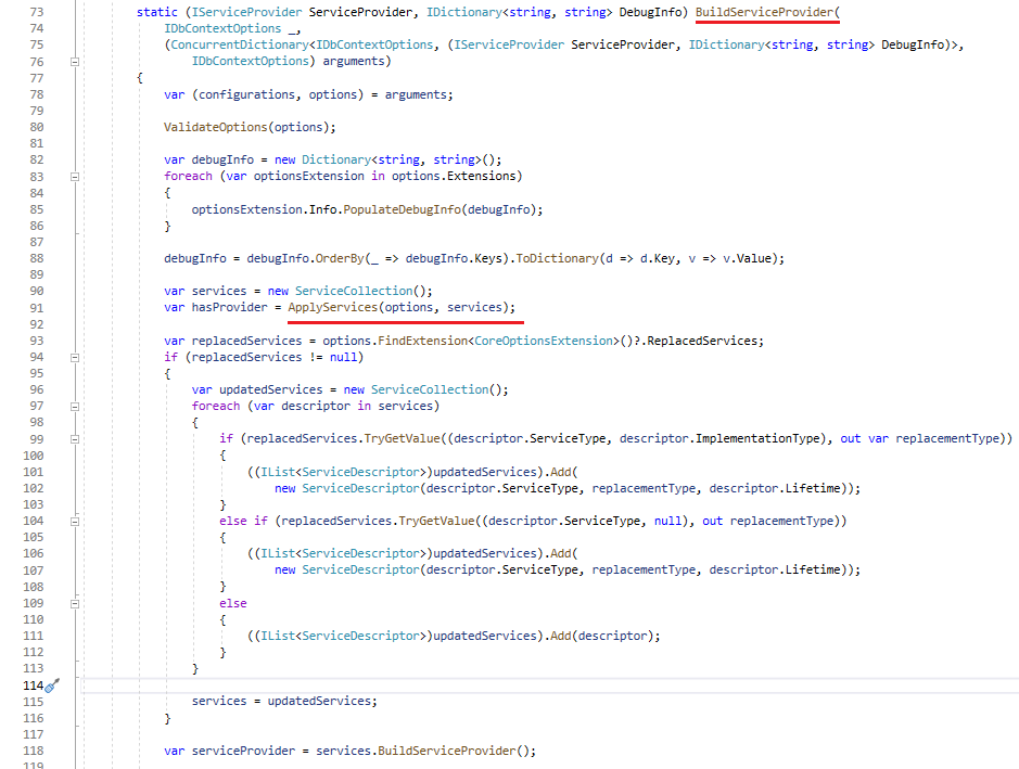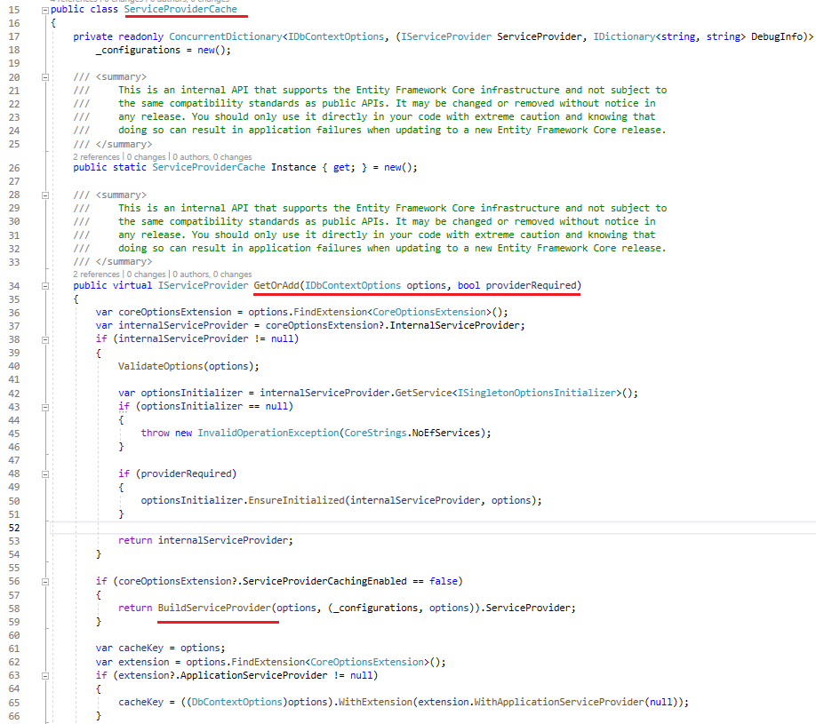Now that the Internal Service Provider has been created fully and the DbContext is ready to use, before going to the Summary section, let’s back to the GetOrAdd method of the ServiceProviderCache class.