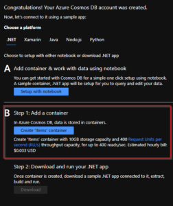 - Set Up Your Database and Containers: Once your Azure Cosmos DB account is created, configure your databases and containers. Containers are used to store your data, similar to tables in a relational database.