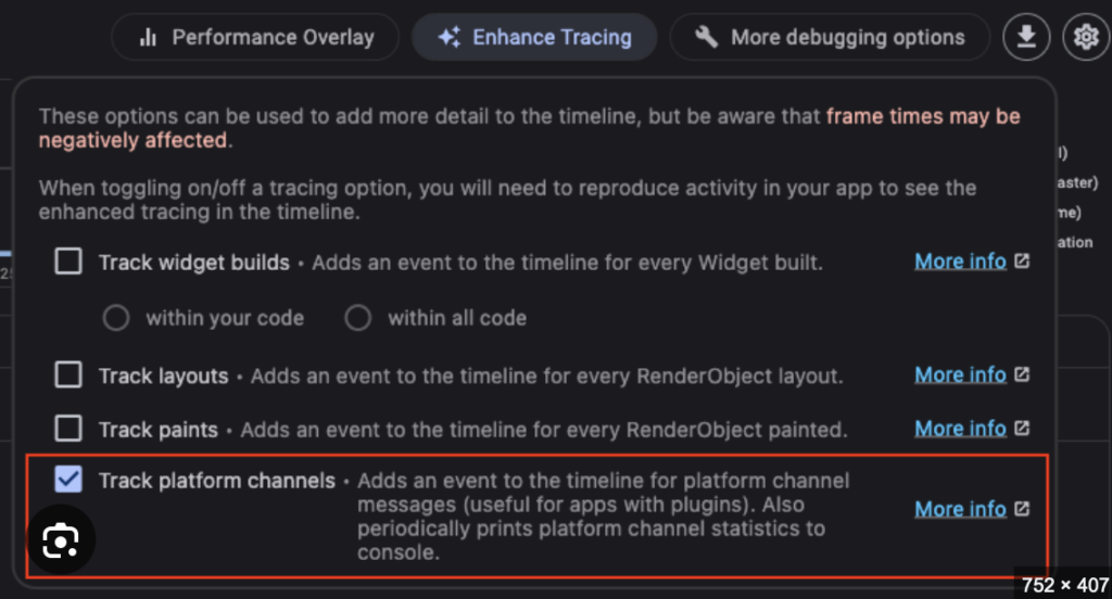 – Enhance Tracing menu for tracking platform channel activity. This is useful for apps with plugins.
