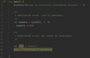 Despite being a multi-paradigm language, Kotlin provides strong support for the ideas of functional programming. Its features—such as lambda expressions, which enable succinct function representations—higher-order functions, which let functions return or accept other functions as parameters, and an extensive standard library with functions for functionally working with collections—all demonstrate this. Developers can easily combine functional programming approaches with other paradigms, such as object-oriented programming, thanks to Kotlin’s design. Because of its versatility, Kotlin is a great option for developers who want to use functional programming in their projects without being limited to using only functional languages. We will examine these Kotlin functional programming concepts in this blog post, along with samples that show how to use them in practical ways.