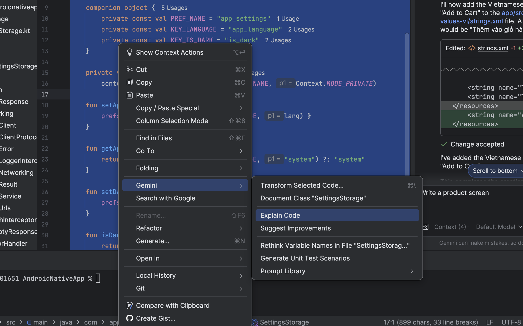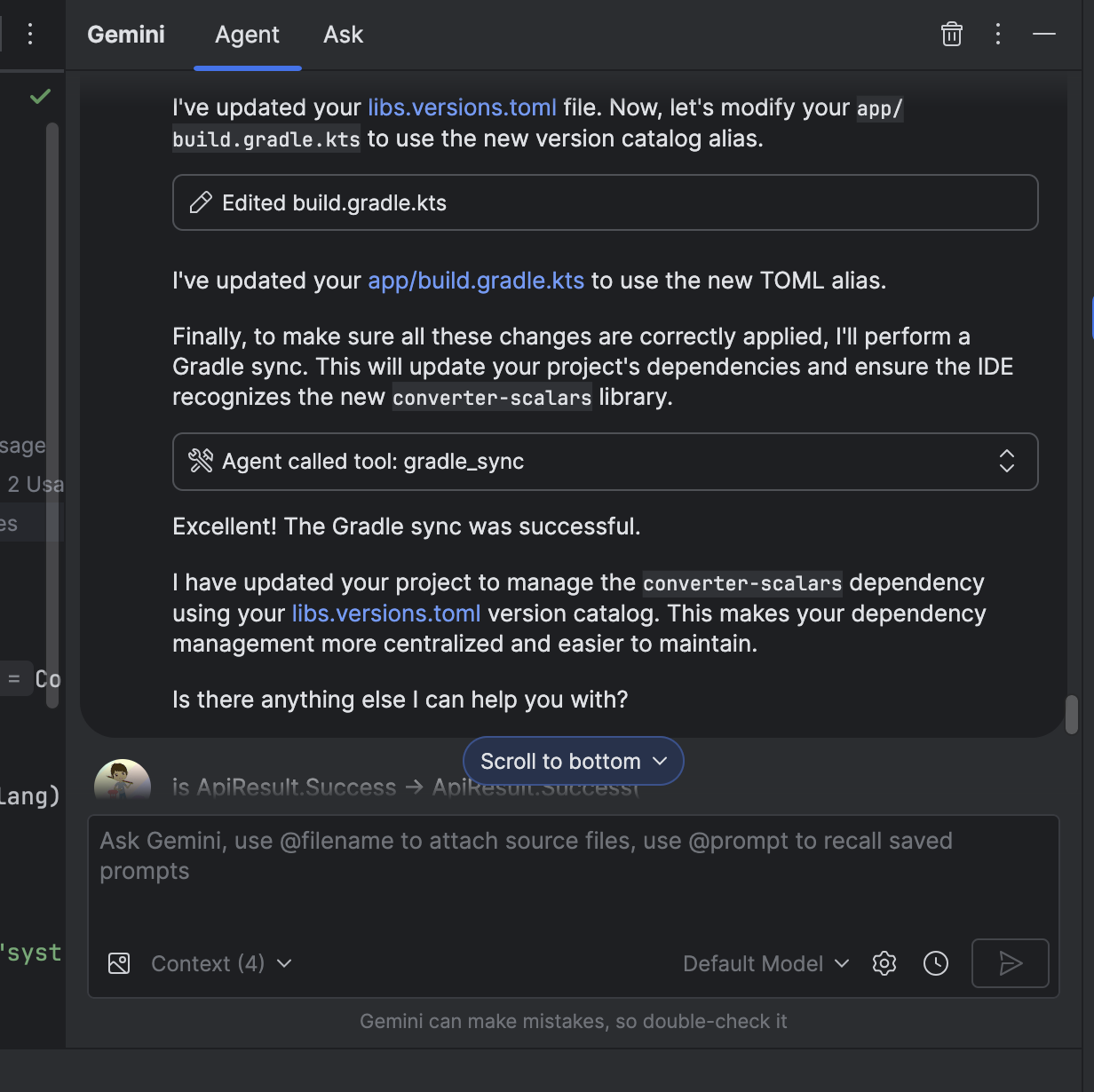 When debugging, the assistant can spot logic errors, inefficiencies, and risky patterns that might otherwise go unnoticed. It doesn’t just highlight problems—it also proposes automated refactoring options that are cleaner, safer, and more performant. For projects that still rely on older patterns, it even helps modernize the codebase by converting legacy implementations to Kotlin, Jetpack Compose, Coroutines, or updated Android APIs.