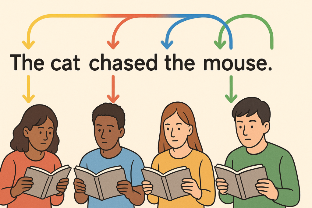 When they combine their views, they understand the sentence much better than if only one person read it.