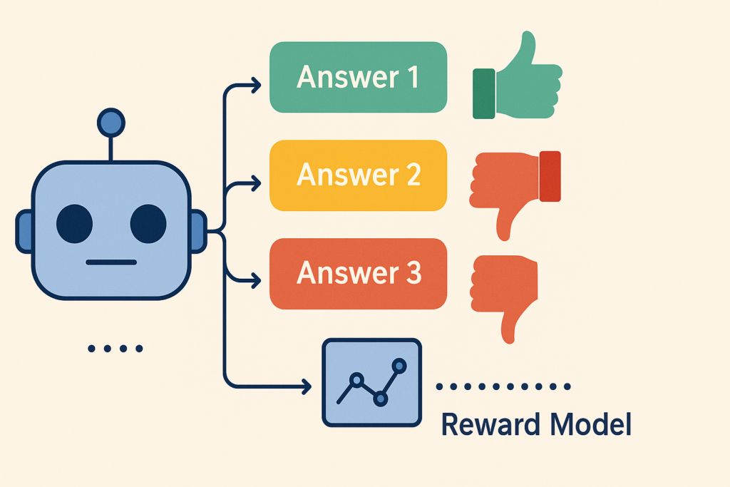 - A separate “reward model” learns to predict which answers humans prefer.