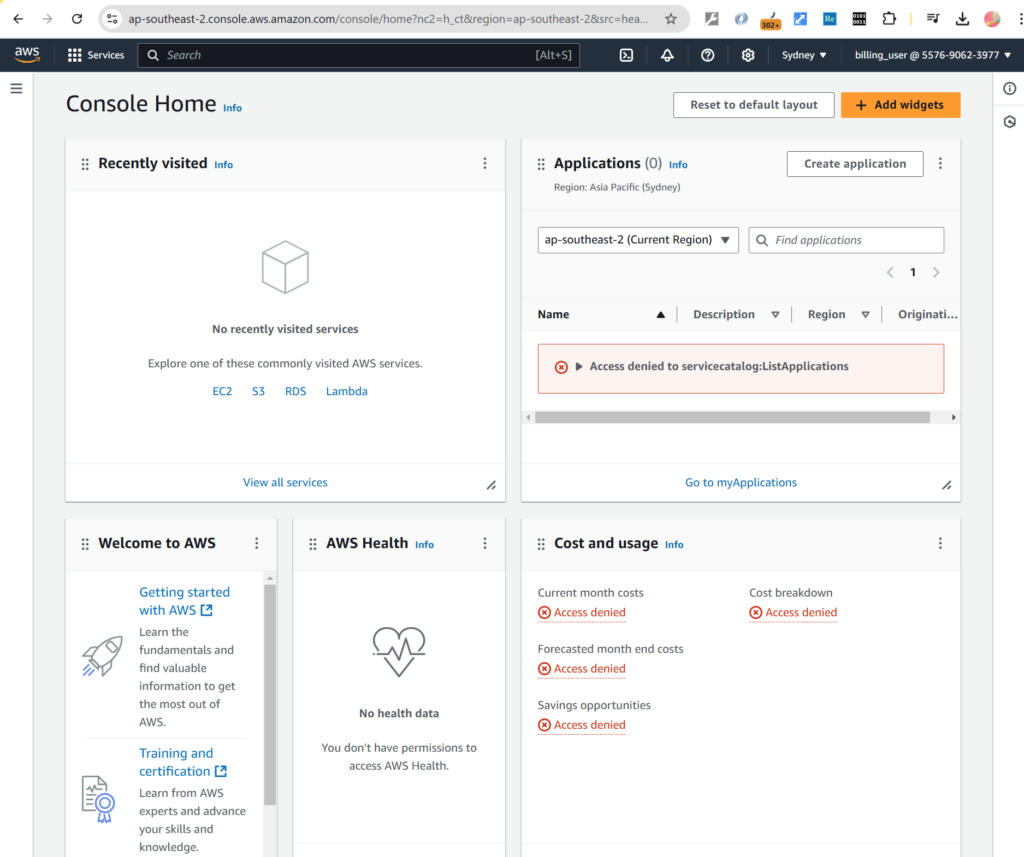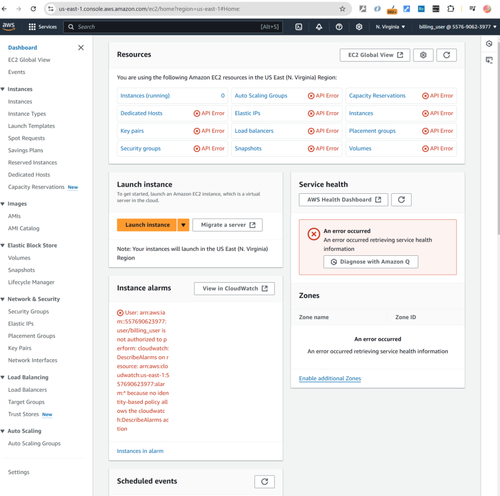 So, let’s go to AWS EC2 you can see the API errors which indicating the user doesn’t have permissions on AWS EC2.