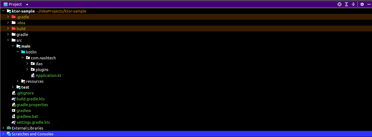 Next, create the basic project structure for your Ktor application. Create the following directories: