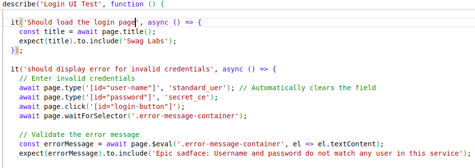 Inside the tests folder create a test file, e.g., loginPageTest.js: