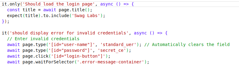- Exclusive Tests – .only() is your surgical test executor, by isolating specific test cases or entire suites with a single method call.