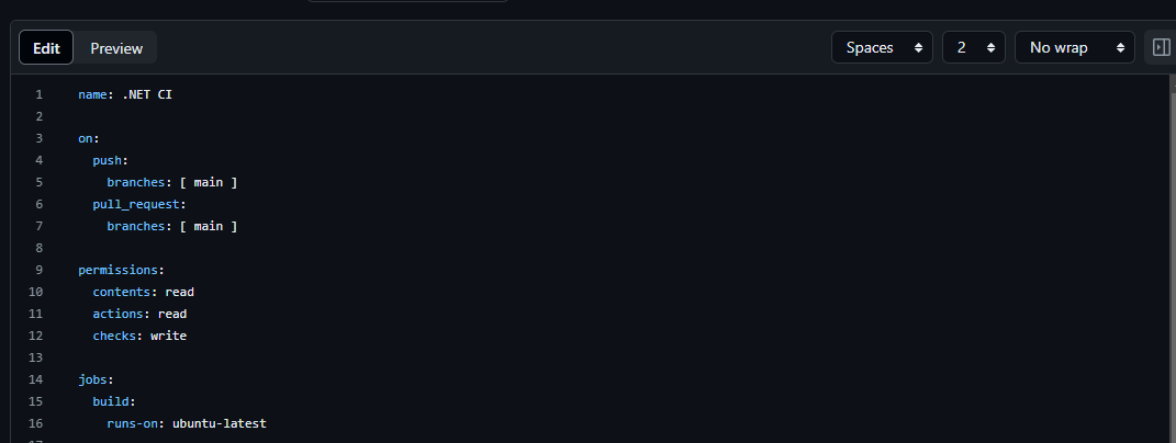 1. Create the Workflow File: In your repository, create a new file at .github/workflows/dotnet-ci.yml. This is where we’ll define our workflow.