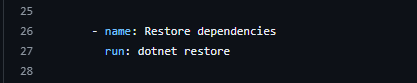 • The --no-restore flag is used because we’ve already restored dependencies in the previous step.