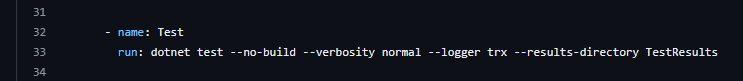 run: dotnet test --no-build --verbosity normal --logger trx --results-directory TestResults