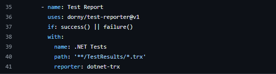 8. Test Reporter: So, to get a nice report of our test results, we can use a community action like dorny/test-reporter