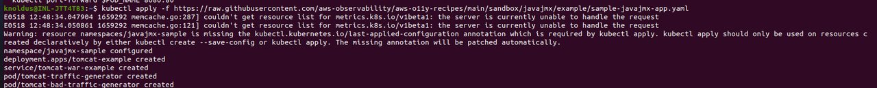 kubectl apply -f https://raw.githubusercontent.com/aws-observability/aws-o11y-recipes/main/sandbox/javajmx/example/sample-javajmx-app.yaml