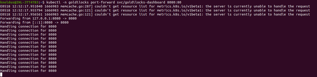 kubectl -n goldilocks port-forward svc/goldilocks-dashboard 8080:80