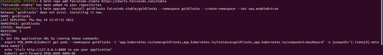 helm upgrade --install goldilocks fairwinds-stable/goldilocks --namespace goldilocks --create-namespace --set vpa.enabled=true