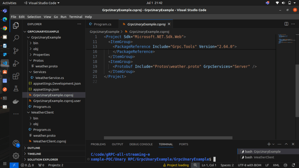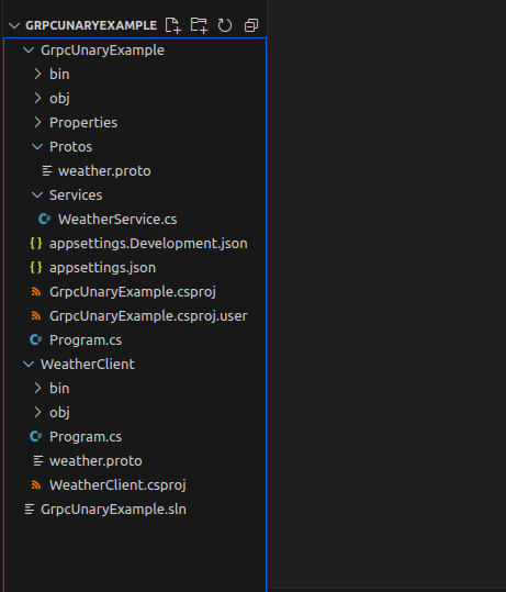 Note: GrpcUnaryExample project is serving as server and WeatherClient project is serving as client project here.