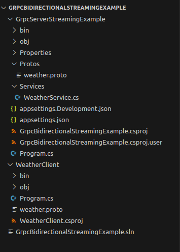 dotnet new grpc -o GrpcBidirectionalStreamingExample