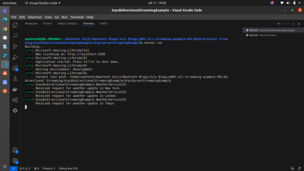 cd GrpcBidirectionalStreamingExample