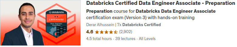 4. If you want then you can also check this Udemy Course by Derar Alhussein on Databricks Certified Data Engineer Associate-Preparation.