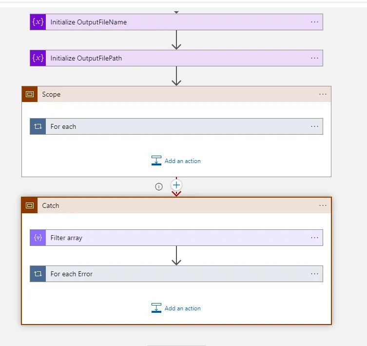 - Add Actions to the Scope: Place the actions you want to monitor for errors within this scope.