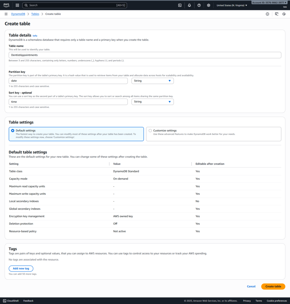 appointments_table = dynamodb.Table('DentistAppointments')