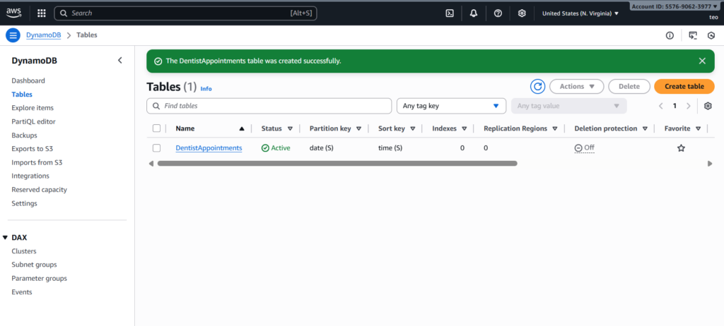 You can now check your DentistAppointments table in the DynamoDB console; the sample data should be there.