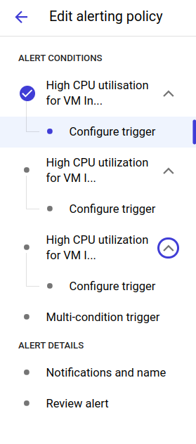 - As created Multi trigger Alerting Policy so I have added all three VM instances in one as below: