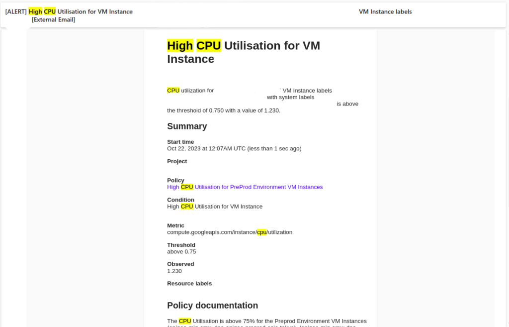 Infra Alerts in API Management plays a very vital role as your working instance may get down or stopped due to some issues. This page provides the information about the infrastructure alerts related to High CPU Utilisation-Instance Down alerts in Apigee in Apigee, specifically targeting VM instances in your environment on Google Cloud Platform (GCP). This ensures timely detection and response to potential issues, preventing service disruptions.