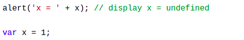 When the interpreter hoists a variable declared with (var), it initializes its value to undefined. The first line of code below will output undefined: