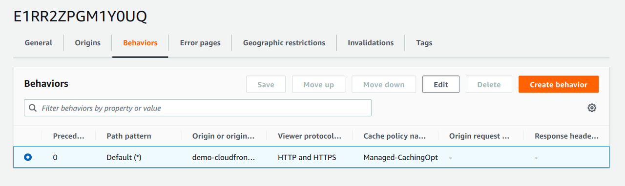 Let’s look at the caching behavior of our CloudFront Distribution as it will tell how the cache will work.