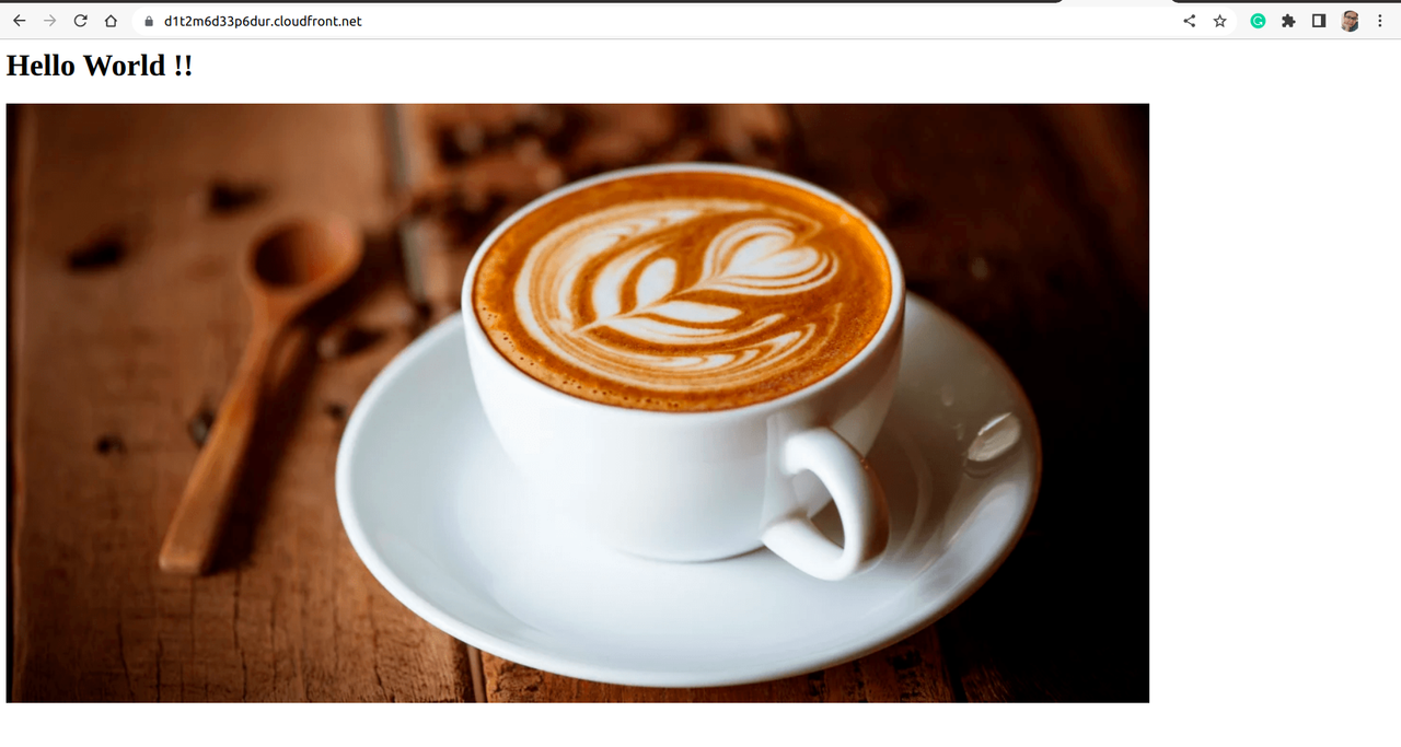 We are getting this updated file directly by Amazon S3 and if we refresh the page for CloudFront we will still get ” Hello World !! “.