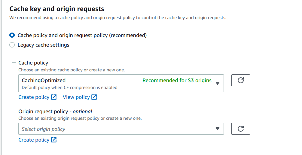 Click on Edit. You can see Cache Policy which is called CachingOptimized which is recommended for S3 origins.