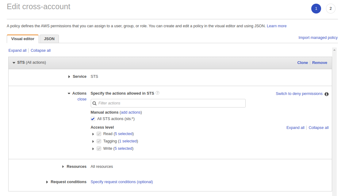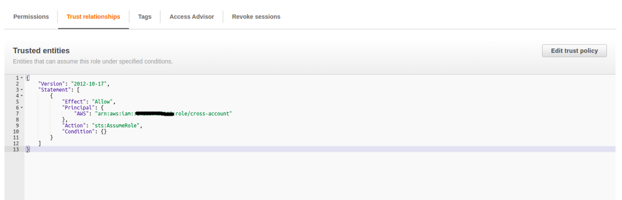• In roles –> trusted policy edit