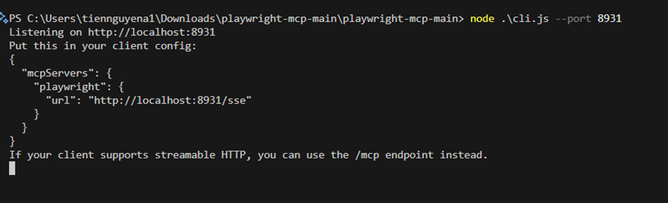 - Run “node .\cli.js –port 8931” to start MCP Server at local