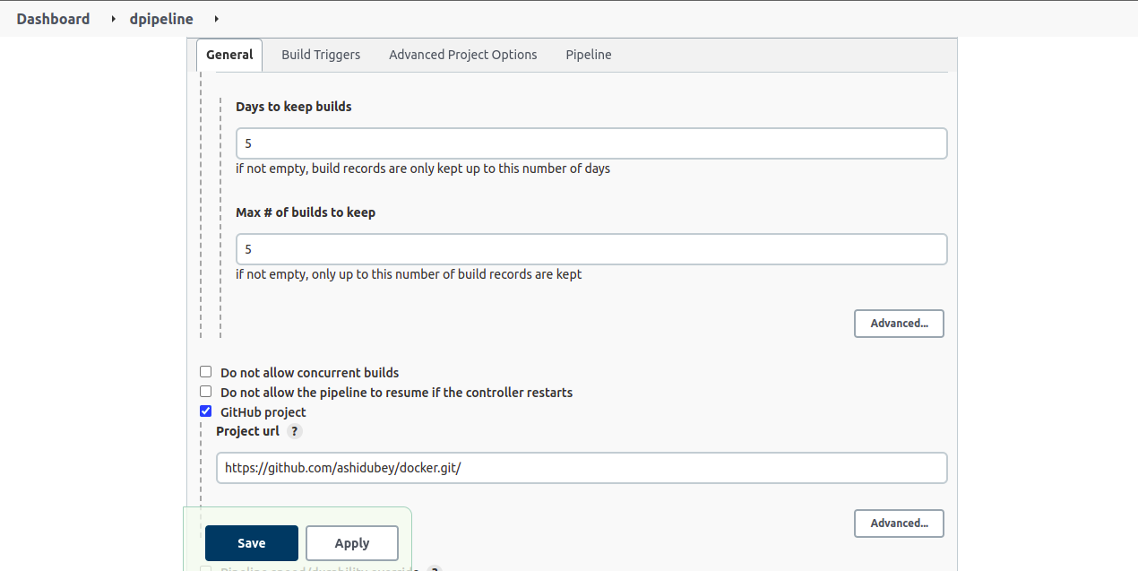 Under Pipeline leave the default Jenkinsfile because this will look for the Jenkinsfile in the cloned repo.